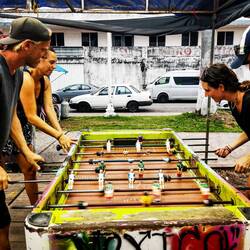 Und an einem Tag war auch noch eine Art Holi Festival in der Stadt. Nur, dass es die Leute hier "Run Color" getauft haben. Auf jedenfall gehen wir auch da mit der Familie von Luis hin, rennen mit und werden am Ziel mit einem DJ Set, noch mehr Pulverfarbe und Wasser spritzenden Feuerwehrschläuchen belohnt. Nach dem Fest gehen wir uns inkl. Kleidung im trüben Meer (wahrscheinlich unweit von Larry) baden und putzen.Leer más