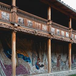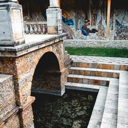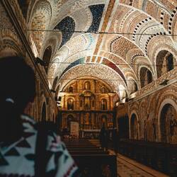 Auf dem Weg nach Baños del Inca halten wir bei einer pittoresken mit Mosaiken übersähten Kirche. In der Mitte der Kirche quellt eine Quelle.