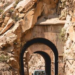 Vom Meer zurück ins Hochland. Wir folgen einer angeblich gefährlichen Strasse durch den nicht so gefährlich klingenden Canyon del Pato. Der Weg führt durch unzählige einspurige Tunnels.
