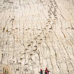 Sucre dünkt uns ok. Die Dinospuren überzeugen aber einiges mehr. Offensichtlich gingen die Reptilien hier vor Jahren vertikal die Wände hoch. Man erklärt uns, dass die Spurenwand vor uns den längsten Dinospaziergang der Welt dokumentiert. Auch die Titanosauriere, die grössten ihrer Ära, gingen hier wiederholt und in Gruppen senkrecht spazieren. Einzig der T-Rex fehlt, dessen Überreste bisher nur in Nordamerika gefunden wurden. Mit seinen kleinen Händen und dem grossen Mund eigentlich ein klassischer Ami. Wir sind begeistert von den Sauropoden, Ornithopoden, Theropoden und Ankylosauriern und nun offensichtlich auch fachkundige Spezialisten auf dem Gebiet der Paläontologie.