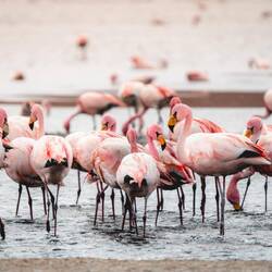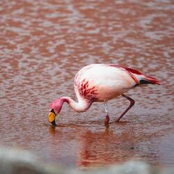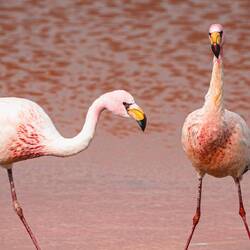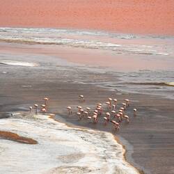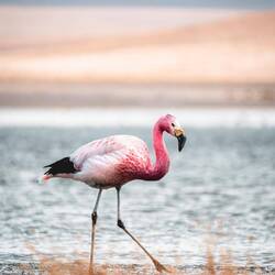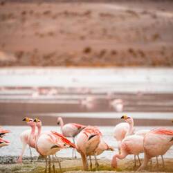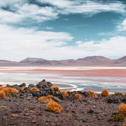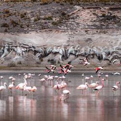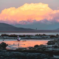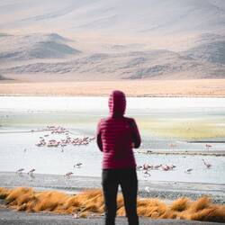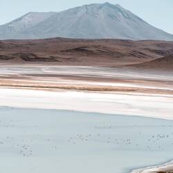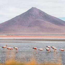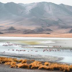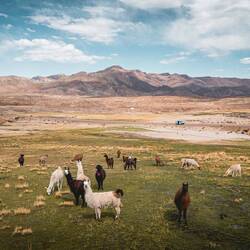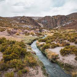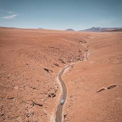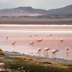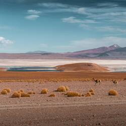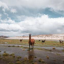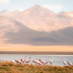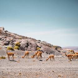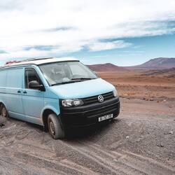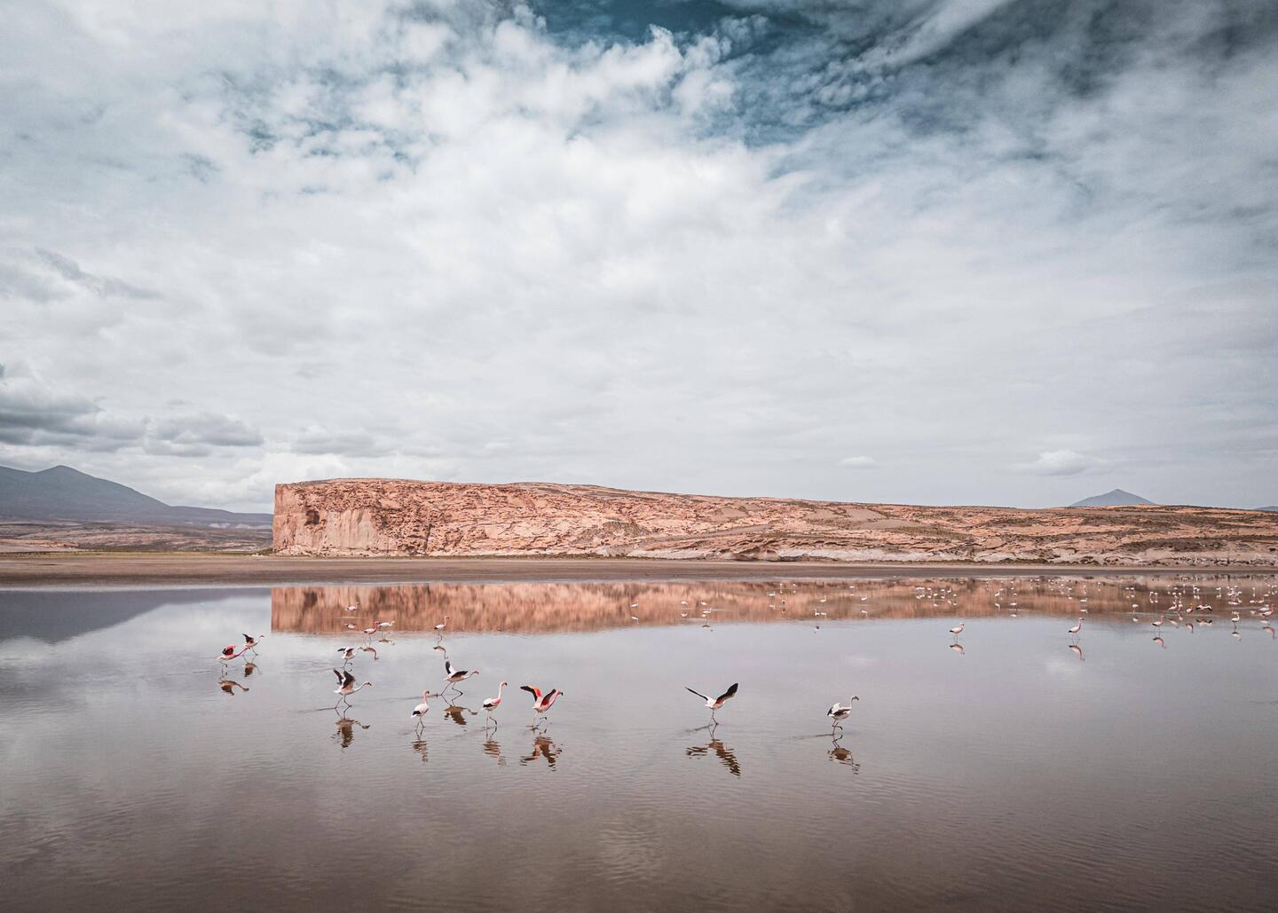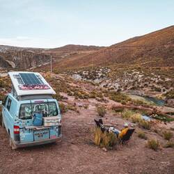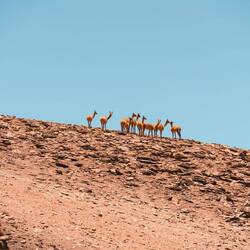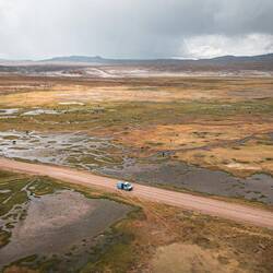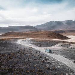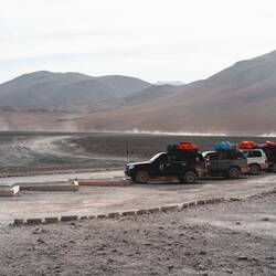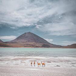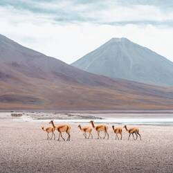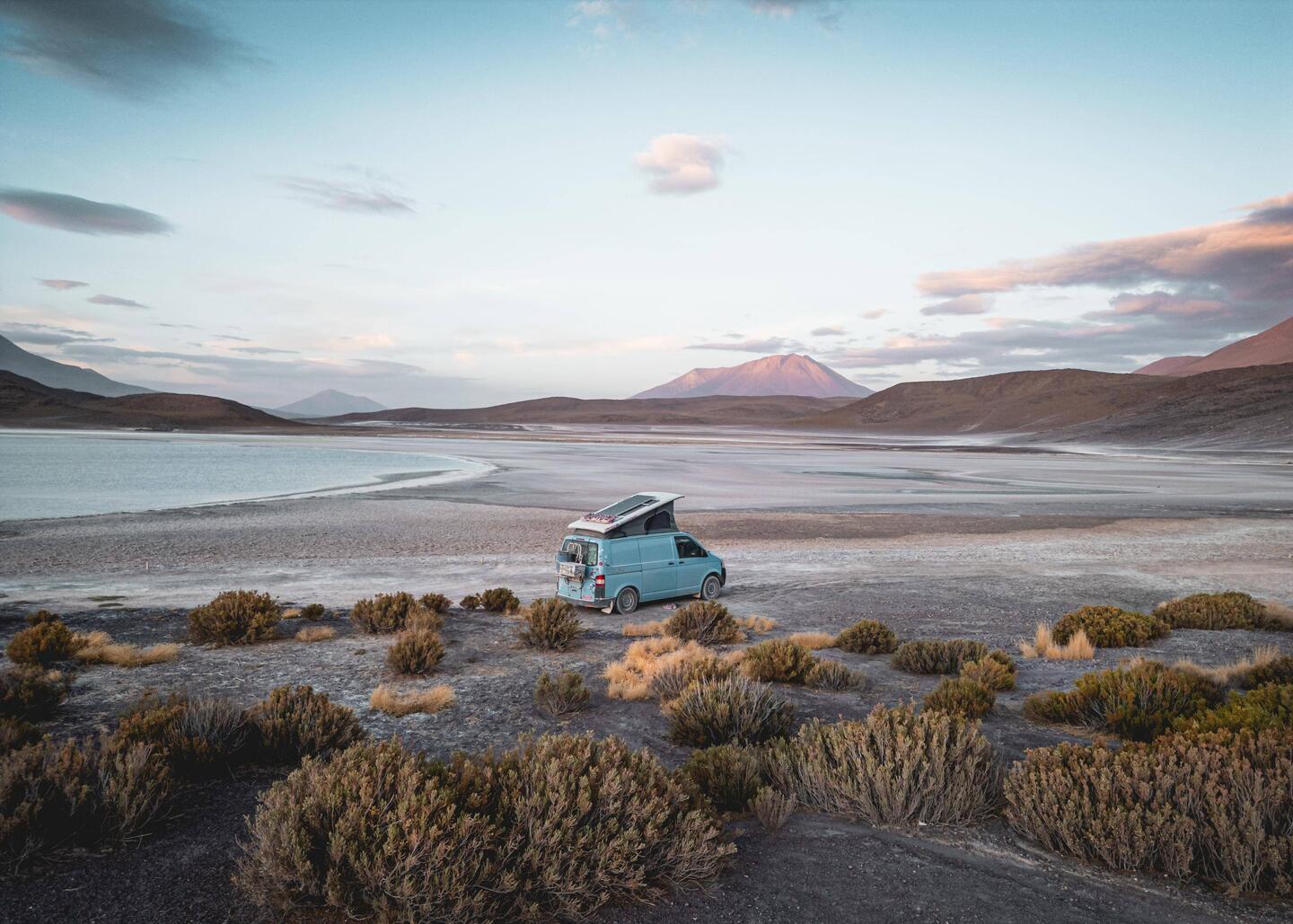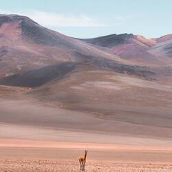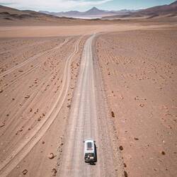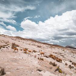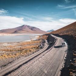 Unser Weg führt uns durch herrliche Landschaften und waghalsige Pisten und wir begegnen dabei unzähligen Flamingos und Vicuñas. Nach fünf Tagen erreichen wir mit der Grenze zu Chile auch das Ende der Lagunenroute. Wir sind ein bisschen Stolz, dass wir die Route geschafft haben und freuen uns auf weniger windige Gefilde vor uns. Und damit befinden wir uns mit unserem Camper wohl auch zum letzten Mal auf über 4500 Metern Höhe. Denn ab Chile gehts bergab.