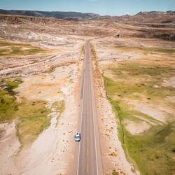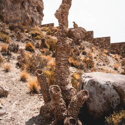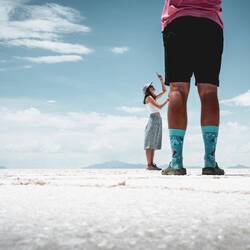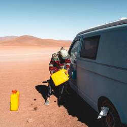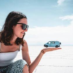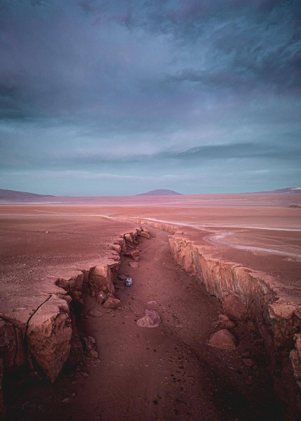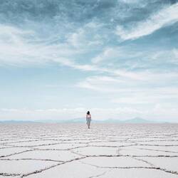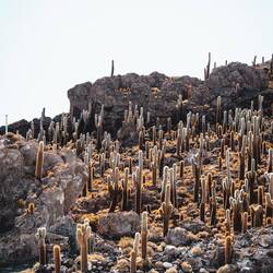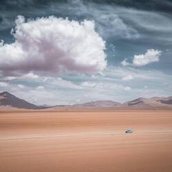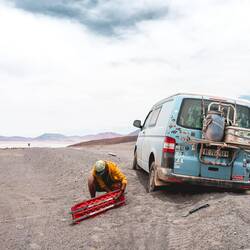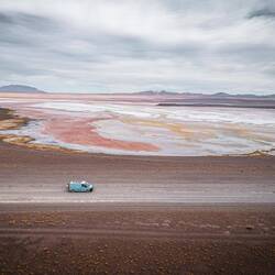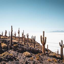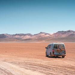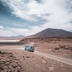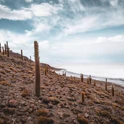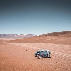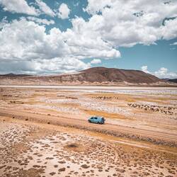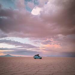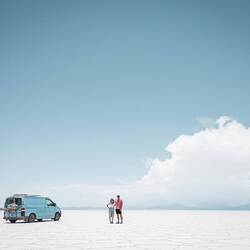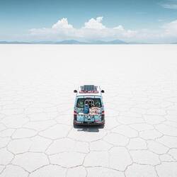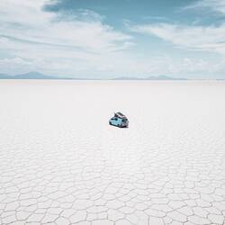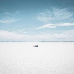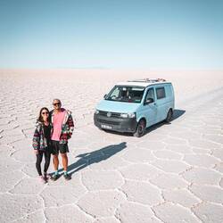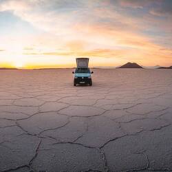 Unser blaues Wüstenschiff sticht in eine längst ausgetrocknete See. Zurück geblieben ist ein schier endloser weisser Planet bestehend aus vereinzelten Kakteeninseln, scharfkantigen Korallenskeletten und Polygonen aus Salz bis über den Horizont hinaus. Wir brettern kilometerweit über die Salzkruste dieser surrealen Welt und versuchen dabei nicht mit unserem Camper einzubrechen. Aufgrund steigender Temperaturen, ist erstere nämlich stellenweise nicht mehr ganz so dick und stabil und es brechen immer wieder Fahrzeuge ein. Wir halten uns vorsichtshalber vor allem von den Ufern der Inseln fern. Dieser lebensfeindliche Ort hält uns mit seinen endlosen Weiten, seiner beruhigenden Stille und kontrastreichen Landschaften in Bann. Wir bleiben drei Tage und sehen in der Zeit knapp drei Autos in weiter Entfernung an uns vorbei ziehen.Read more
