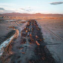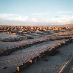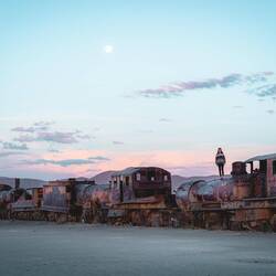 Vor ein paar Jahren war Bolivien noch viel grösser als heute und reichte unter anderem bis zur Pazifikküste. Das Land verlor jedoch einen Krieg nach dem anderen und schliesslich auch sein Küstenterritorium an Chile. Chile versprach danach eine Eisenbahnlinie, die La Paz mit Arica verband, zu errichten und Bolivien so einen Meerzugang zu ermöglichen. Die Eisenbahnlinie wurde gebaut, Uyuni wurde ein wichtiger Knotenpunkt für Mienenexporte, Jahre vergingen, die lokale Industrie in Uyuni brach zusammen und eine Vielzahl der Lokomotiven und Zugwagen wurden obsolet. Seither stehen sie hier in der Wüste und können gratis besichtigt werden. Zum Beispiel von uns.Read more