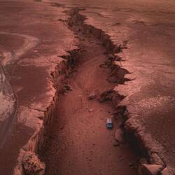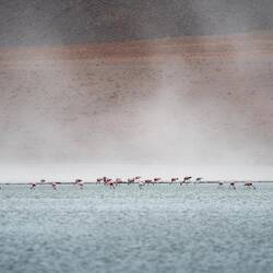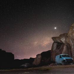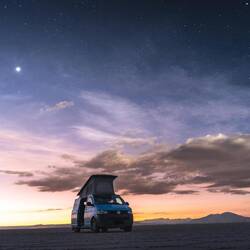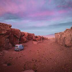 Sobald sich der Tag seinem Ende neigt und die Sonne hinter dem Horizont verschwindet, können wir unsere Sonnenbrillen, die seit Sonnenaufgang auf unseren Nasen sitzen, ablegen. Kurz darauf führt die veränderte Thermik zum allabendlichen Ministurm, der aus dem Westen kommend an unserem Bus rüttelt. Nach knapp zwei Stunden verzieht sich der Wind und es wird so ruhig wie an wohl wenigen anderen Orten auf dieser Welt.Read more