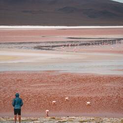 20h später befinden wir uns umgeben von Wald, Mücken und Kaimanen in der schwülheissen Pampa Boliviens. Die nächsten drei Tage erleben wir allerhand. Einmal streifen wir durchs Dickicht auf der Suche nach Anacondas als unser Guide plötzlich hektisch in einen Busch greift, zwei riesige Schlangen heraus zieht und uns energisch bittet sie ihm abzunehmen, weil da noch mehr im Busch sind. Ein anderes Mal halten wir mit unserem Boot und werden vom Guide zu Pepe geführt und aufgefordert ihm den Kopf zu streicheln. Pepe ist ein 350kg schwerer und über 4m langer Kaiman. Die Leute hier kennen ihn seit mehr als 30 Jahren und sie sind Freunde. Dann gehen wir einmal Piranhas fischen und essen sie Abends. Und zu guter Letzt fahren wir mit dem Boot an einen Ort wo sich zwei pinke Flussdelfine im braunen Wasser tummeln. Unser Guide sagt, dass es hier sicher zum schwimmen sei, weil sich die Kaimane und Piranhas aus Angst vor den Delfinen fernhalten. Nach zehn Minuten im Wasser badend, taucht wenige Meter vor uns der Kopf eines Monsterkaimans auf, der grösser als Pepe ist. Ende.