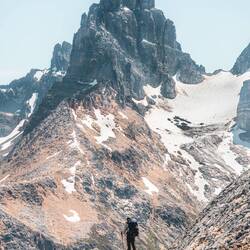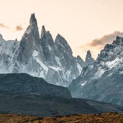 Hinter dem Dorf El Chaltén erhebt sich eine der ikonischten Gebirgsketten Patagoniens. Je näher man sich ihr nähert desto grösser wird sie. Und wenn man zu nahe geht, sieht man sie fast nichtLæs mere