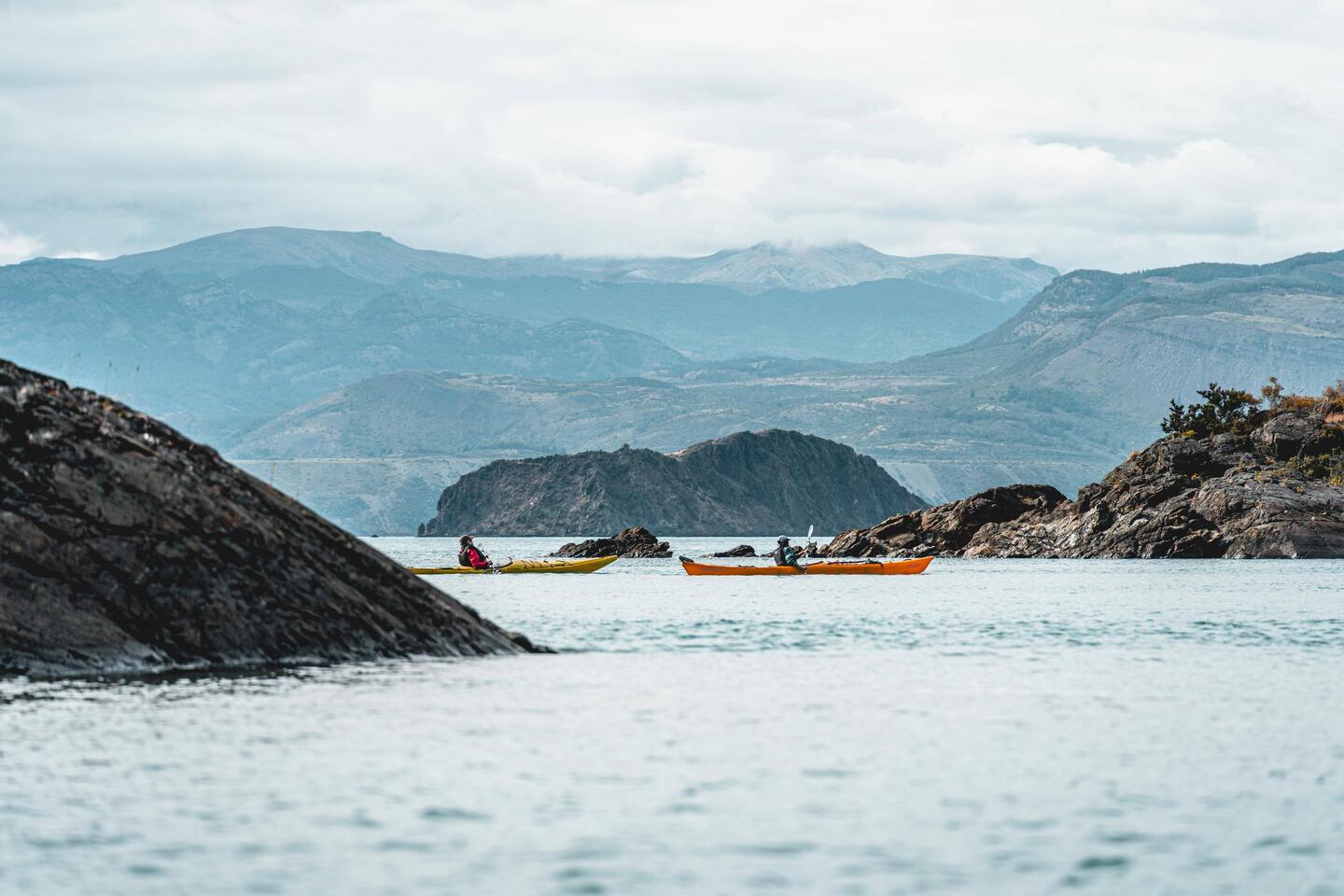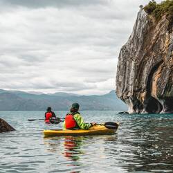 Oft ist der Wind im zweitgrössten See Südamerikas stark und die Wellen hoch. Heute nicht. Wir kayaken zu Marmorhölen und werden dabei nicht seekrank.
