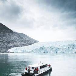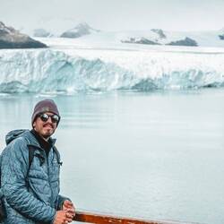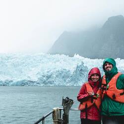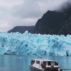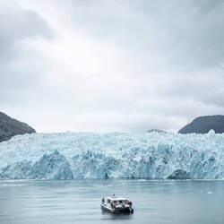 Hier haben wir einen Gletscher besucht. Ab und zu brach ein Stück laut ab und hat grosse Wellen gemacht.