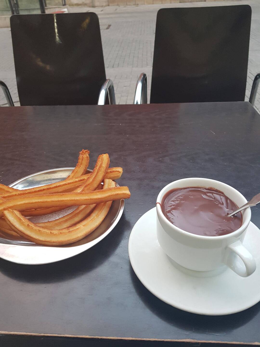 I asked a local where to go for chocolate con churros, to compensate for the disappointment at Astorga.