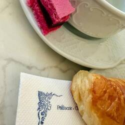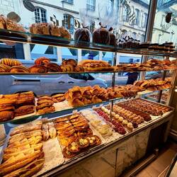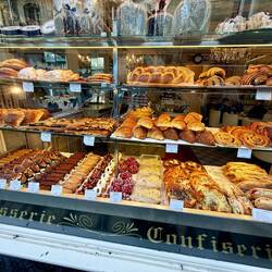 The morning was bright, and we wandered into town in search of breakfast. We stumbled across the most gorgeous old café and bakery — apparently the oldest in Bayeux!