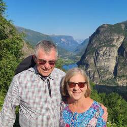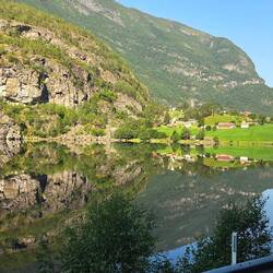 The bus ride from Østerbø Fjellstove to Flåm was through the mountains. It was beautiful. We stopped at one scenic overlook along the way. The view was spectacular. It was Mary's birthday, so thereRead more