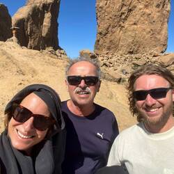 Weiter gehts zum Roque Nublo, wo wir dank der winzigen Autos einen super Parkplatz finden und losmarschieren. Es geht einige 100 Höhenmeter zwischen Pinien hinauf und nach ~ 40 Minuten stehen wir auf dem Mondplateau mit Blick auf den Roque. Wir erkunden ein wenig den Berg und die herrliche Aussicht und schon gehts auch wieder über Stock und Stein herab 🥾