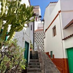 Durch die sich stetig verändernde Landschaft fahren wir nun zu einem der schönsten Pueblos Spaniens mitten in den Bergen ( Auszeichnung: los pueblos mas bonitos de españa). Die Fensterläden sind alle hübsch grün gestrichen und überall hängen einheitliche Kupferschilder zur Orientierung. Als Stärkung gibt es Papas Arrugadas mit Mojo, Brot mit Aioli, Eis und Drinks. Alles super lecker! Nach einem kleinen Erkundungsspaziergang durch den Ort, beschließen wir, anstatt zu unserem ursprünglich geplanten Ort bestehend aus Höhlen, zum Puerto de Mogán zu fahren.