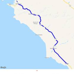 Hier in Mexiko haben die Ortschaften die nette Eigenschaft, dass man erst beim Nachfragen erfährt in welchem Ort man sich befindet. Camalu. Heute morgen wollte ich nur an die Küste. Aber ich musste von der Pazifikküste auf die andere Seite der Halbinsel und wieder zurück. Den Pazifischen Ozean sehe ich immer noch nicht, aber ich soll dicht dran sein. Aus den Fotos werdet ihr erkennen, wieso ich etwas zurückhaltend bin.
