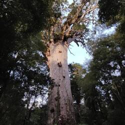 Um 16.00 Uhr erschien unser Führer, der uns zu einem sehr alten und großen Kauribaum führte. Der Maori zeigt dem Baum seine Wertschätzung, indem er ihn mit einen Gesang begrüßte. Diese Zeremonie erfolgte auch bei der Verabschiedung.