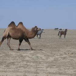We used local jeeps for a day’s driving over the original seafloor, to the canyons and beaches that used to form the seashore. Sauntering camels and galloping horses abound – to us they seem wild,Meer informatie