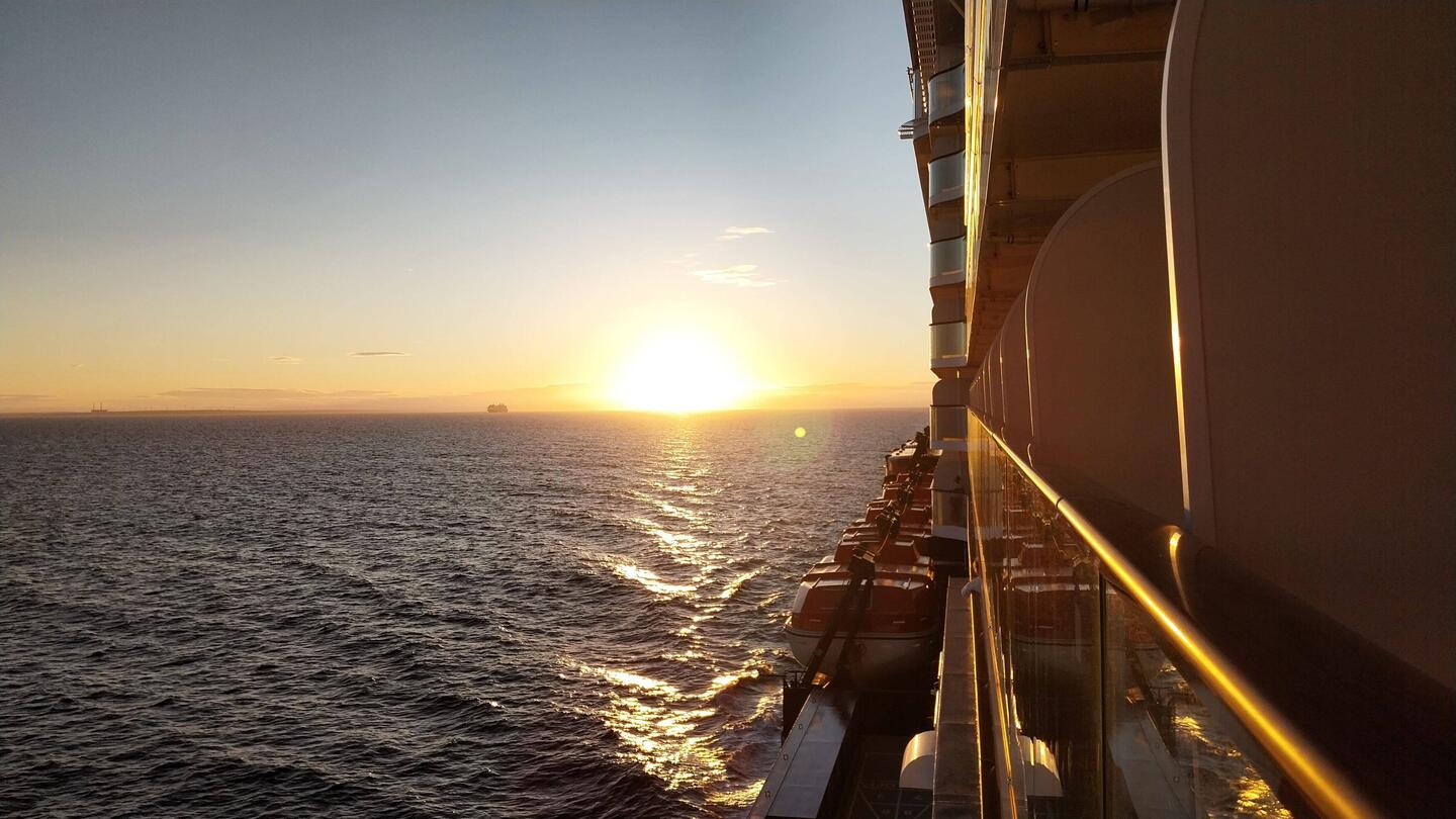 Der zweite Seetag irgendwo zwischen Island und Kanada hat mit Sonnschein begonnen 🇮🇸🇨🇦🫶🌊🛳. Heute ist auch unser 14. Hochzeitstag 👩❤️💋👨 ein schöner Tag zum Feiern und Genießen. 🥂🥰🌹.