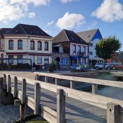 He's decided to use the toll motorway un heads for La Croytoy, a nice little town on the estuary. Thems bin ere before, a couple of years ago, The aire is a big car park a short walk from the town, last time they was packed in like sardines, but today there's plenty of room un they even manage a spot on the outside for me on a bit of grass to rest me weary tyres, I've dun a few miles today u know.