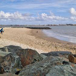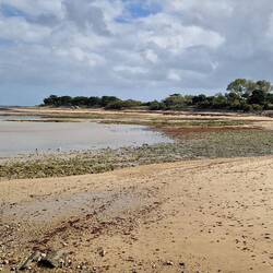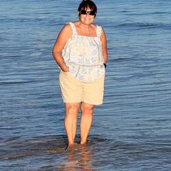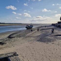 They gus fur a walk tu the beach, bit scrubby un tides out, so the cross the road un walk a couple of hundred yards un their on the beach on the other side of the island, better beach this side un of course her decides to have another paddle. That's okay but om gunna get sand all uver me floors now. Honestly, they dow care, you know.Les mer