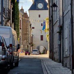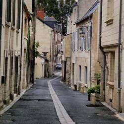We're travelling on tu Saumur today, our last day travelling down The Loire. Thems, well hims, read about some nice picturesque villages along the way, apparently, 'must see, chocolate box places', so them gunna give um a go on the way. One of um, Candes St Martin, you can't drive thru so them relying on sat nave tu get um there, oh oh, well tu say the road was narra was an exaggeration, it were dam me near enuff a cart track, still it got em tu the recommended car park just outside the village .
