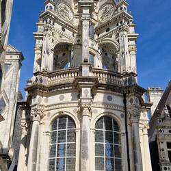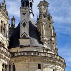 Well we drives through the wooded parkland un park up on the 100 van aire where weem stopping the night, another car park, but there's plenty of room and not crowded. Aquick cuppa before they sets off. OMG it's a big un, as they leaves the car park they gets the first view of the chateau The château features 440 rooms, 282 fireplaces, and 84 staircases. One of the highlights is the spectacular spiral staircase in the centre of the chateau, with 274 steps, her knows as hers walkedup some of um, un down all of um . The two spirals ascend three floors without ever meeting,