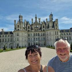 Well, thought they would never wake up. 9.30 before they stirred. Eventually we got out the car park at Chambord, and headed off to Blois in the hope that it wud be quiet on a, Sunday fer a look round. Dream time again fer the yampy two. It's heaving and the bridge which we need to cross to get to the designated parking place he found is closed with a flea market. So a waltz around the town to another bridge an we are parked by a field with a camel, llamas, goats and all sorts. The circus is in town opposite. Off they trundle leavin me to eye up the livestock. Nice place Blois, the flea market is OK as well an he manages to buy a couple of glasses for his rum addiction. Nice lunch with galletes and Brittany cidre for him and they managed to climb up the steps to the cathedral after that. Back home to me waiting and a few killies down the Loire to our overnight stop at Chamoint Sue Loire.Les mer