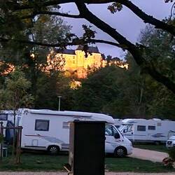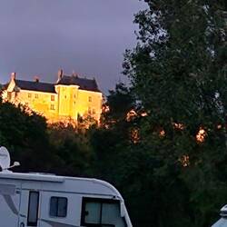 Her pop outside while cooking tea to get some pictures of the sunset un the chateau looks lovely in the fading sun, the after tea they gus for a walk to see the light show. The château is turned all colours, but what helps the super light show is the beautiful full moon popping up from behind the chateau.Les mer