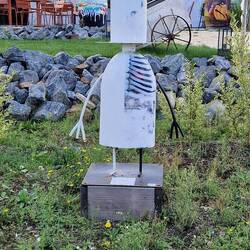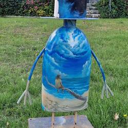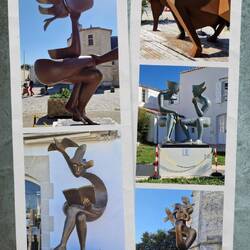 Then back tu the centre via the light house, un a gallery selling strange statues, like the one dotted around town. Then over the bridge, but there's not much open here., but a lovely church. They've bin on the lookout fu sumwhere tu eat, but yes, you guessed it thems got the timing wrong agin. They've shut after lunch, un dow open till 7.pm it's unny half four, so they as a drink, a bloody expensive one, people watch for a while, un as a think.