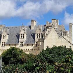 Weem moving on agin today tu Chinon, a medieval town on the banks of the Vienne river. Apparently, it's where Joan of Arc met Charles VII in 1429 un theres a big statue of er in the town. Theres another château here, but they wow be goin to it as it's up steep hill overlooking the town. It's lit up at night, so that might be nice.