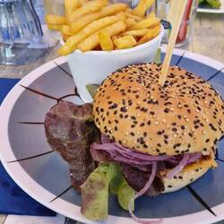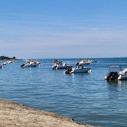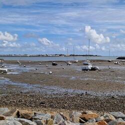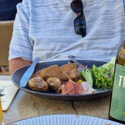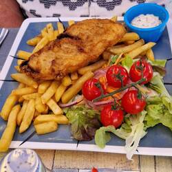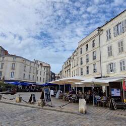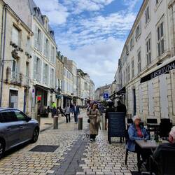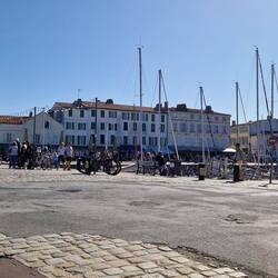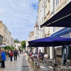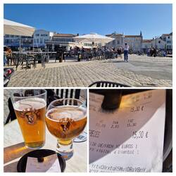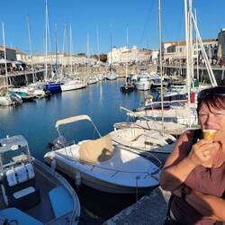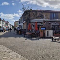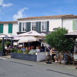 La Flotte is a bit like Saint- Martin-de-Re unny not as big, un not as busy. It's got a central harbour surrounded by shops, bars un restaurants. The idea is to have lunch, un sos not to miss out, they decide tu find somewhere first. They find a restaurant un asks the waitress for a table, apparently them just in time, she's just putting the closed sign out. It's a busy little place, galletts, creps un the usual mussles.