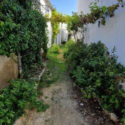 Well, them left me in peace on me nice big pitch surrounded by hedges un off they pops. It's not a long walk cos weem right in the town. Lots more shuttered houses, her's just realised hardly any un these houses as gardens, where'd you do yu barby.
