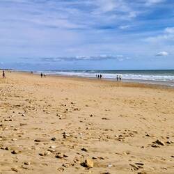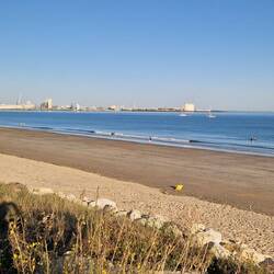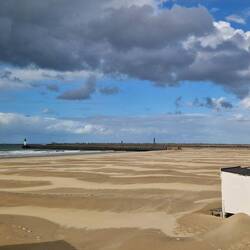 The weather has took a bit of a turn, it's cold, very windy un we've had rain, but them up fu a walk so off they gus. A short walk to the huge prom, but my God, it's blowing a hoolie, how they manage to keep upright, I don't know. The beach is lovely, a long expanse of fine sand, blown into drfts, un the sea is within easy reach. Lots of beach huts and the prom is full of free activities for kids, skate parks, climbing frames, un swings, etc. Theres even wooden sunloungers, un lots of seats on the prom.