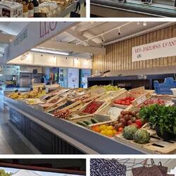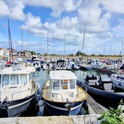 This town as also got a market un they love a market so offs they gu tu find it. Well it's all round the back o beyond, but when the gets there, it's quite big. Lovely produce all displayed nice. Round the corner is a lovely little harbour un some nice lookin eateries but them got tu get on so they con park me up in the Aire at Le Bois-plage-en-Re