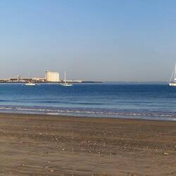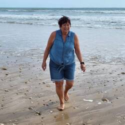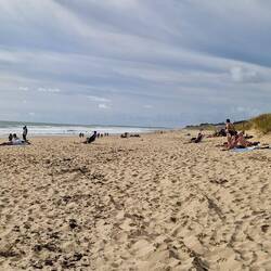 My God it's huge, it gus for miles, beautiful fine white sand, wi the sea not too for out, a few pebbles but it's okay. Her decides to gu fu a paddle, well you can't not. It's cool but okay, so it's stroll up the beach before tea, them ent are racking up the steps this holiday.