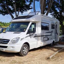 Okay, so far, until they get tu the Aire. 'Computer say no', the aire's full, so another 3 point turn while e looks fo somewhere else. Carrefour to the rescue, according to hes site app, un the Brit who's just pulled up alongside, there's 50 pitches available on their carpark, free of charge. It's a no-brainer, so off she sets. Sure enough, huge carpark un about 15 other motorhomes, pitched up around the edge. Into reverse un parks up in a bay.