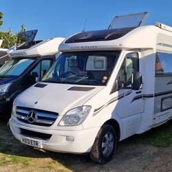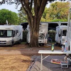 Good journey as we're doing quite a few killies tuday, un when we get there, it's huge site with lovely big grass, yes grass pitches. A quick tour round the site, shop, bistro cafe un swimming pool. Then it's kettle on un chairs out, sitting in the sun.