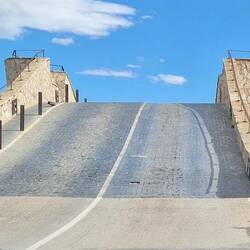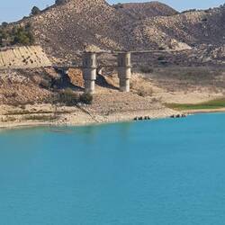 Shows how much rain they haven't had as level was way below the towers of the sluce gates! Beautiful scenery up there and well kept crops and buildings [Fi]