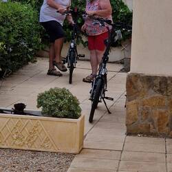 Before we start the packing Fi wants to try out the electric bike so Martin gets her sorted and off she goes, doesn't take her long to get the hang of it and before we know it she's off around the block.
