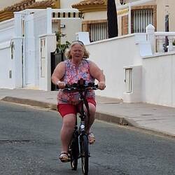 I was holding on for grim death at this point! Think the last time I was on a bike was about 10years ago in Key West! Managed to balance and get to the Spar with Martin, then on my own coming back to play with gears but battery was failing on way home, nevermind, at least I had a bash and will get bike out when home.....once I have a helmet! [Fi xx]