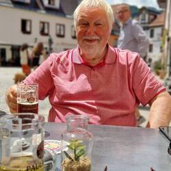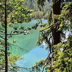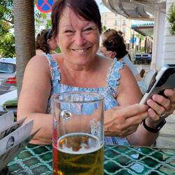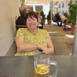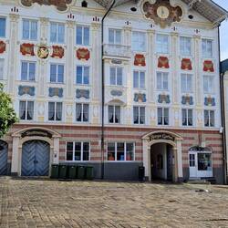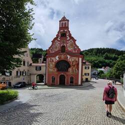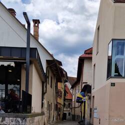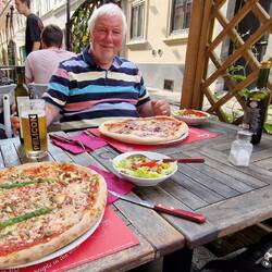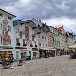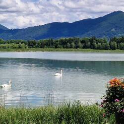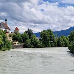 Sunday morning and it's sunnier than we expected after overnight rain but the clouds are still hanging over the mountains. Theym going to attempt to walk into the town, it's only about a mile. Started out and was beginning to think they would have to turn back when her knee started to protest. They should have got the bikes out as the cycle path is flat and goes straight into town. Anyhow it became easier and they med it to the town. There's not many people about and most of the shops are closed. The buildings are very pretty and many have paintings decorating them. They walk over the bridge by the Museum, the river is a really strange colour, almost white. There's a few cafés open so they stop for a German beer, well you know them, before heading for the bus station for a free bus ride to the lake.Leggi altro