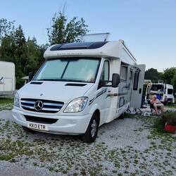 As an aside, our motorhome owners like to give friendly waves to others as they go past. In the UK and France most times waves are given and received so all friendly like. On this trip through Germany and Austria she lifts her hand and nothing comes back from the passing vans. After much pondering he gently explains that it's probably they see her hand action as a Nazi salute, hence the lack of smiles and reciprication.!! oops.............Leggi altro