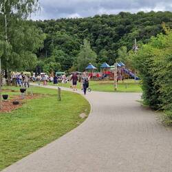 After a cuppa they as a walk around the town, he's picked this place as its got sum good reviews, yu knows, 'nice town, couple of restaurants, un some Caves close by,'. Well they wore expecting this, the place is heaving, folks everywhere. The Caves is right in the middle of town set in parkland full of eateries un activities , looks like there's bin summut on today, groups of youngsters, look like scouts, trooping through the town. Nice place, good choice.