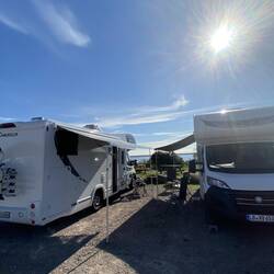 Der Campingplatz 🏕 ist leider schon voll, aber ein sehr netter Nebenplatz ist dafür ganz leer🤩hier haben wir unsere Ruhe... und wir haben es ja jetzt ohne Strom und Versorgung raus💪🏻.
