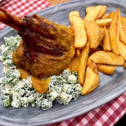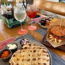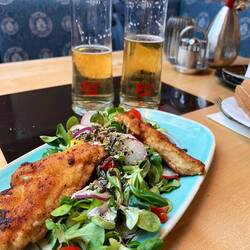 Am echt schönen Platz, direkt am Wasser, ist auch ein Restaurant „Jagdhof“ wo wir sehr lecker zu Abend gegessen haben 😋