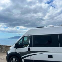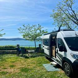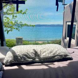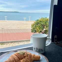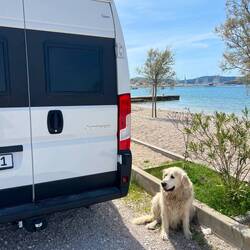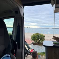 Am Meer angekommen hat mein Frauchen einen Top Platz organisiert und wir liegen praktisch mit dem Bett im Wasser 🤣echt klasse hier.