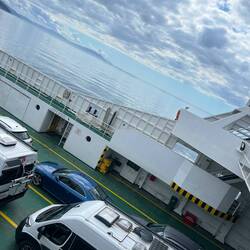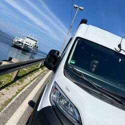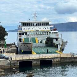 Wir frühstücken gemütlich und Putzen den Sam etwas. Dann geht es los ihn richtig Fähre……..
