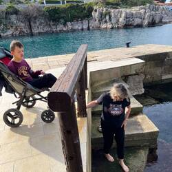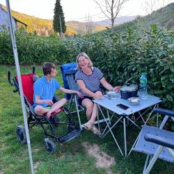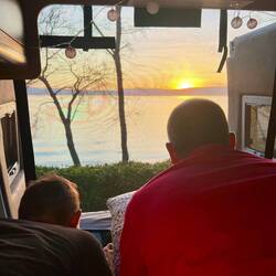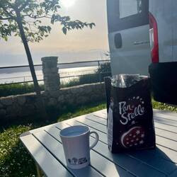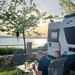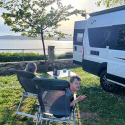 Nach diesem tollen Erlebnis, fahren wir zurück zu unserem Platz in Biograd, wo Lias mit seinem neuen Freund spielt und wir eine Kaffeepause mit den letzten Sonnenstrahlen machen 🌞