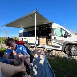 Unser Übernachtungsplatz war super ruhig und keiner wollte etwas von uns 🤩💪🏻Das Wetter ist auch Topp so das unsere Solaranlage ☀️ die Batterie 🔋 immer schön Voll hält, so das es auch Kaffee für uns gibt🤩
