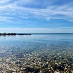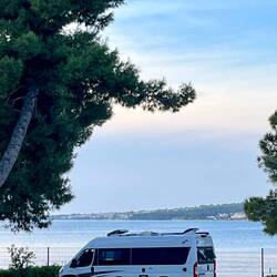 Wir haben uns zwei Plätze in der Nähe von Fazana angesehen und haben uns für Peroj entschieden, ganz einsam am Wasser 🤩