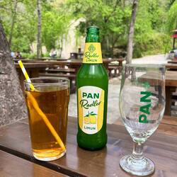 In Novo Mesto angekommen, gehen wir kurz einkaufen und dann am Fluss Krka zum Abendessen 🥘
